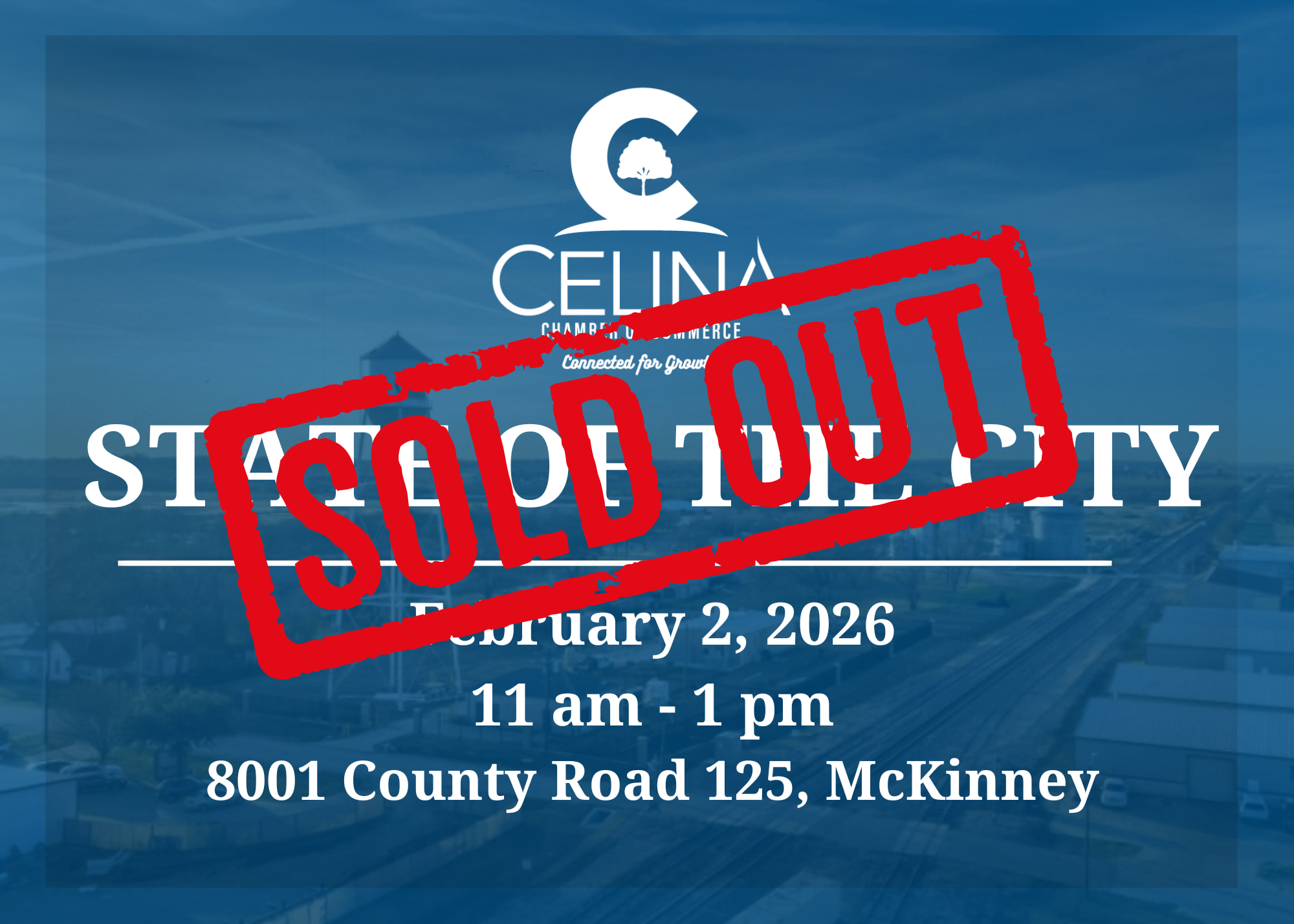 Join the Celina Chamber of Commerce, City of Celina, Celina Economic Development Corporation, and Celina Independent School District for the 2026 State of the City Luncheon—an annual event that brings together business leaders, community partners, and residents to celebrate Celina’s progress and look ahead to the exciting future of our community.