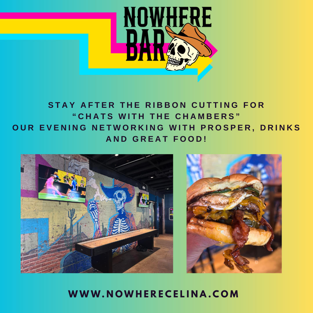 Join us for a fun evening with light bites and social networking.This is our quarterly event with the Prosper Chamber. We will also be cutting a ribbon for the new Nowhere Bar! https://www.nowherecelina.com/