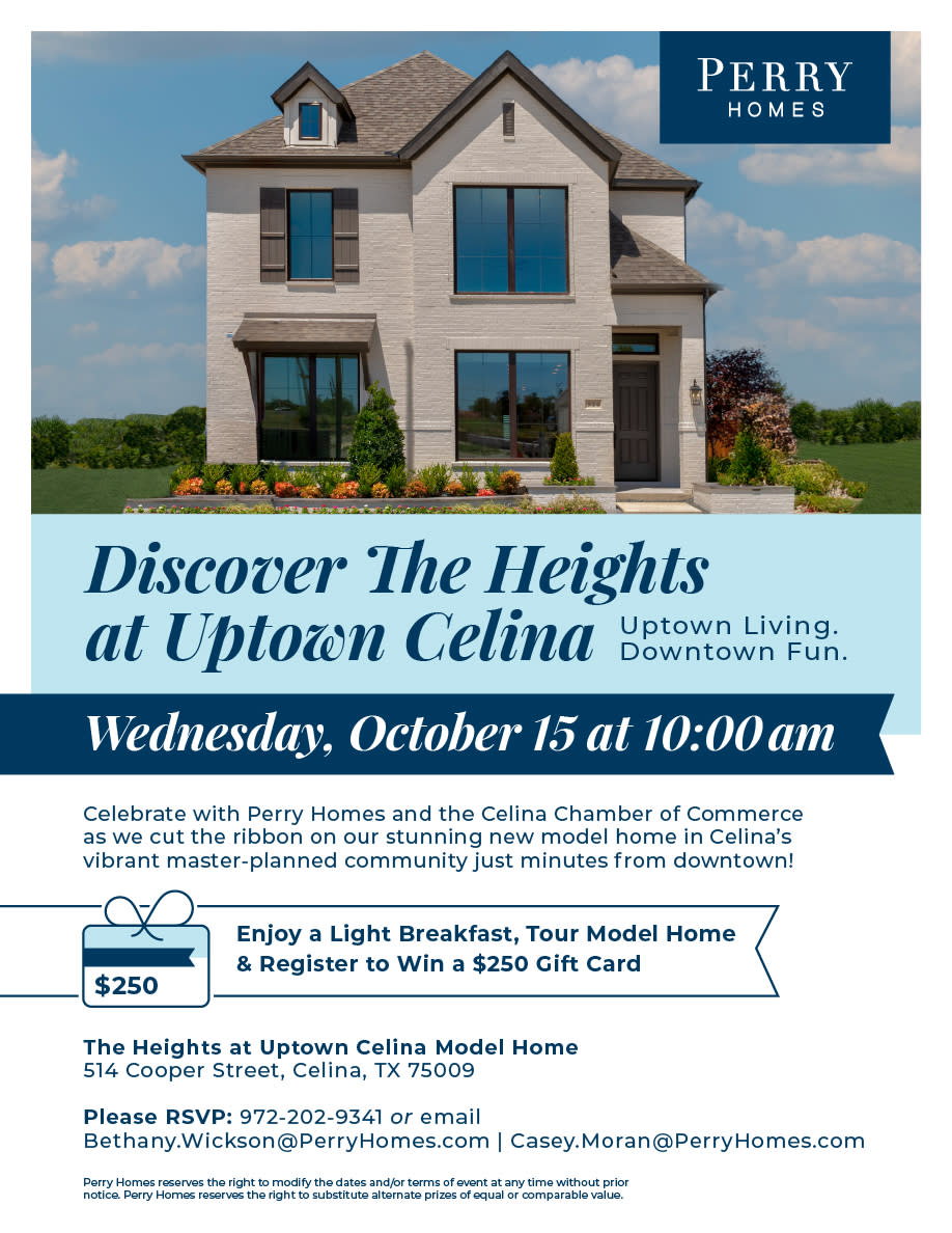 Join us for the Grand Opening of The Heights at Uptown Celina, brought to you by Perry Homes.Images